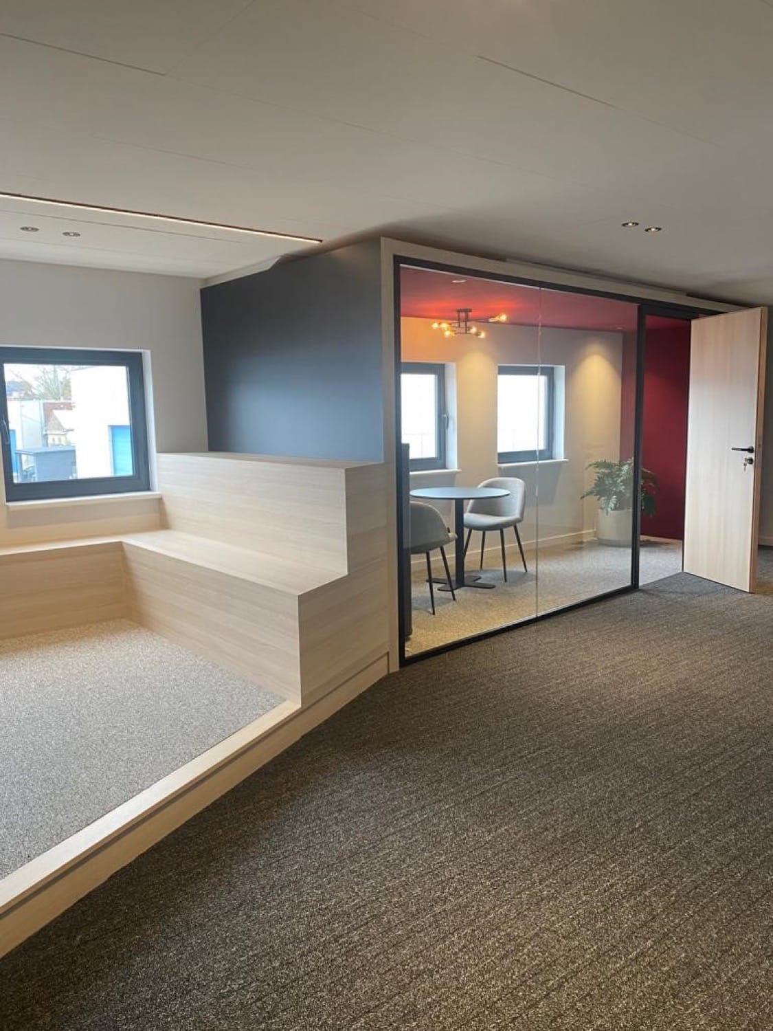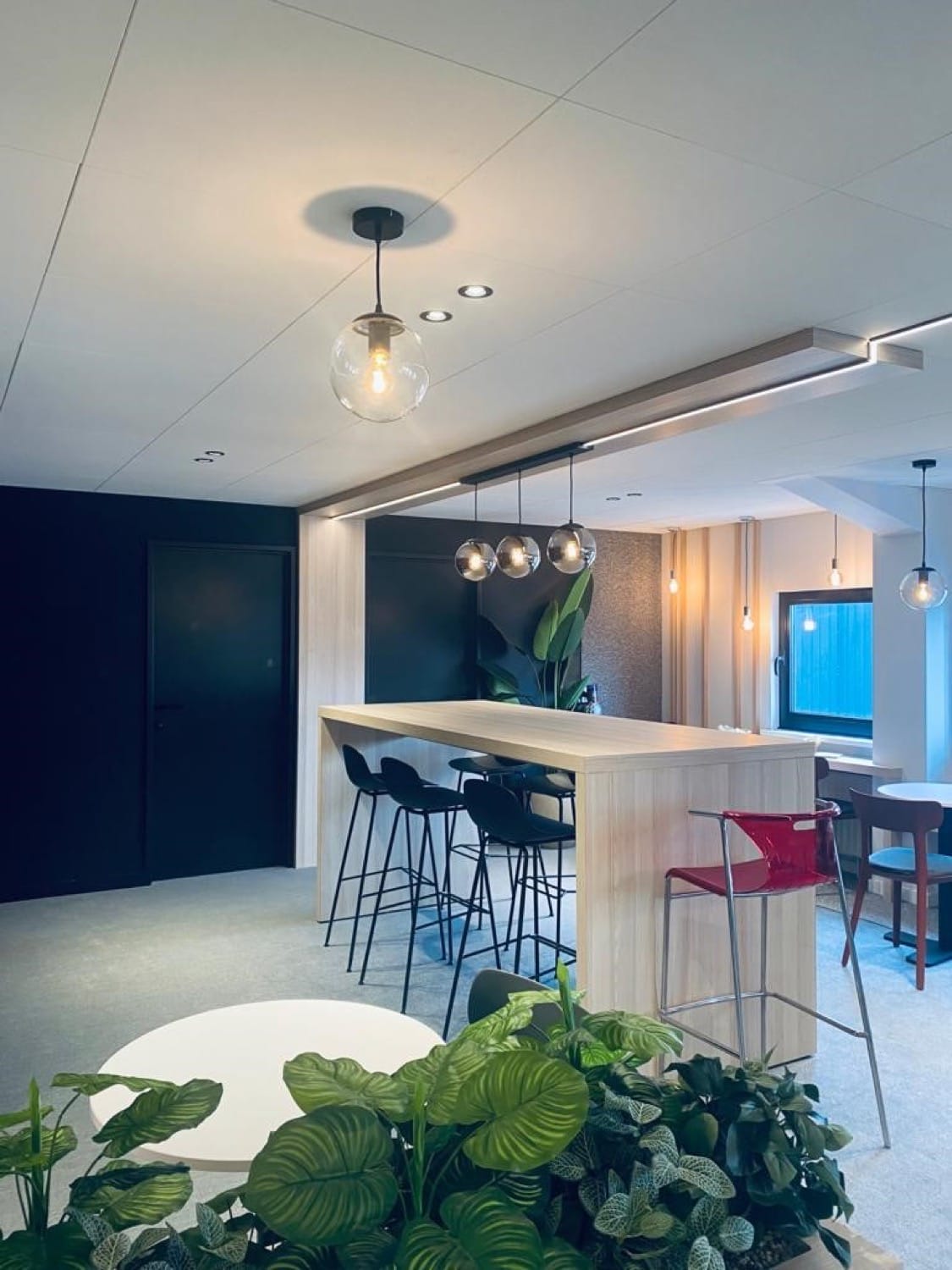 We stelden ons een complete herinrichting voor van de begane grond met een ontvangstruimte en een nieuwe balie. Aan de achterkant zijn de kantoren nu uitnodigend en luchtig.